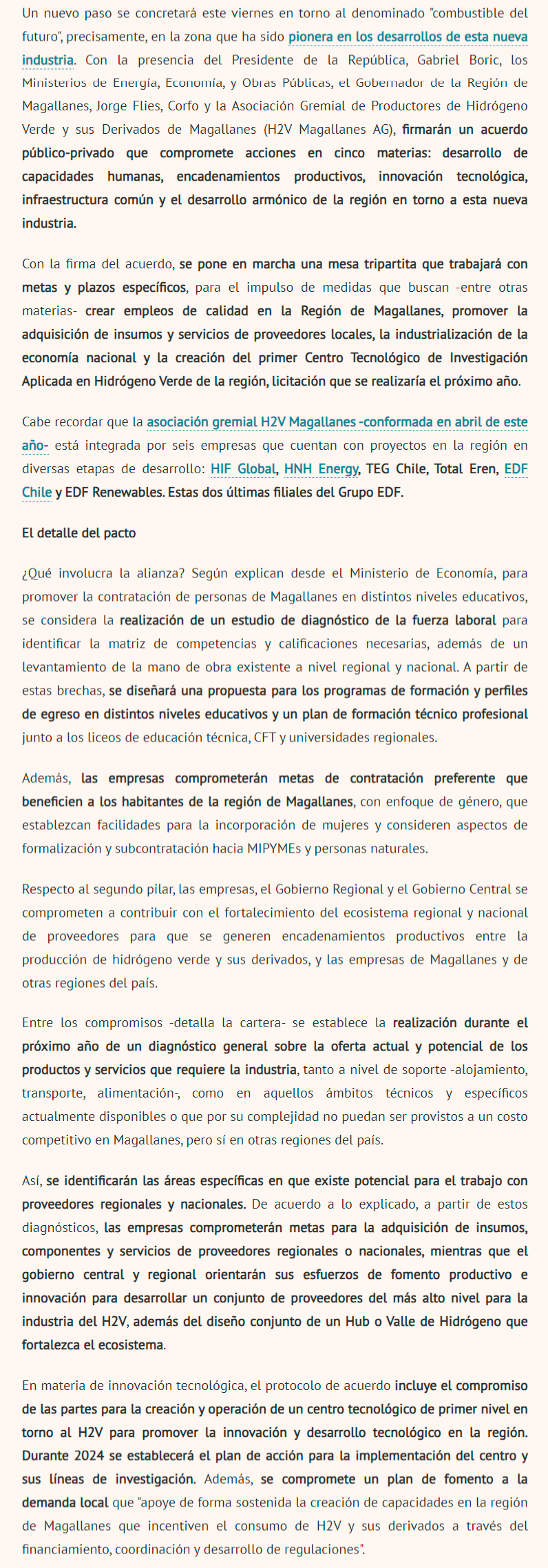 DIARIO FINANCIERO – El acuerdo aborda cinco pilares, será firmado este viernes por Ministerios sectoriales, el Gobierno Regional de Magallanes y la Asociación Gremial de Productores de Hidrógeno Verde, con la presencia de Boric.