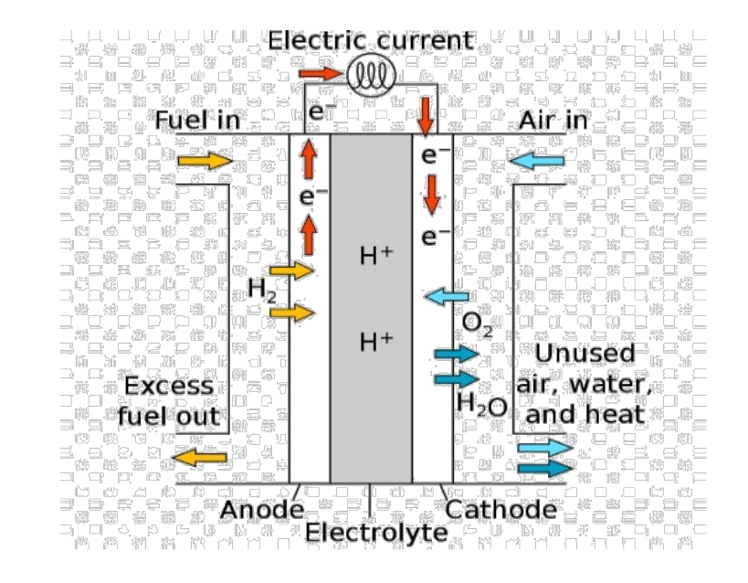 - PEMFC (Proton-exchange membrane fuel cells) utiliza una membrana polimérica sólida conductora de protones como electrolito.