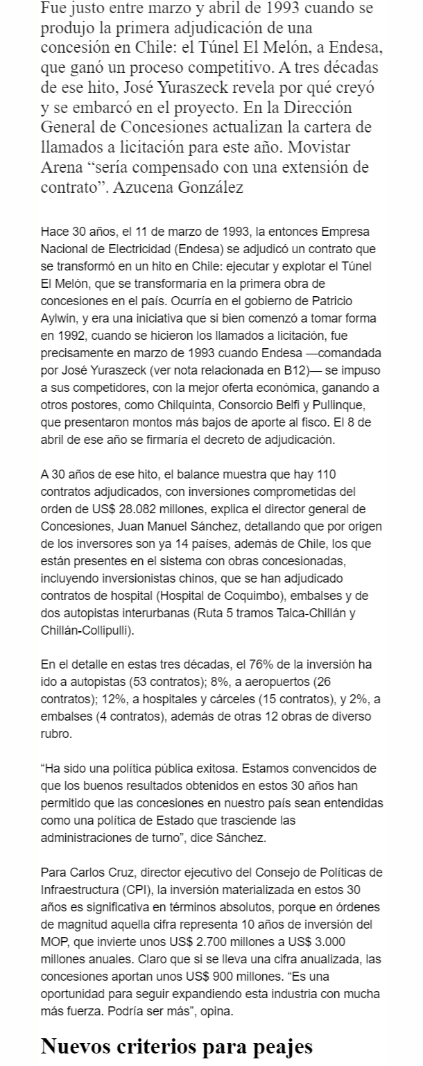 EL MERCURIO – La inversión materializada en estos 30 años es significativa en términos absolutos, representa 10 años de inversión del MOP.
