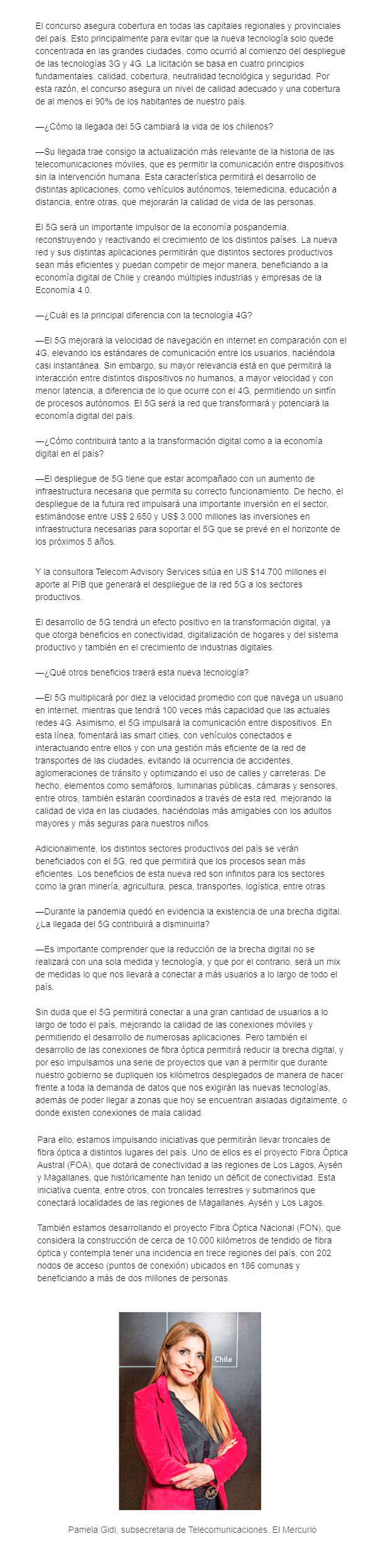 EL MERCURIO – El arribo de la nueva red tecnológica inalámbrica al país, proyectado para inicios de 2022, permitirá no solo reactivar la economía, sino también contribuir con la eficiencia y competitividad de diversos sectores.