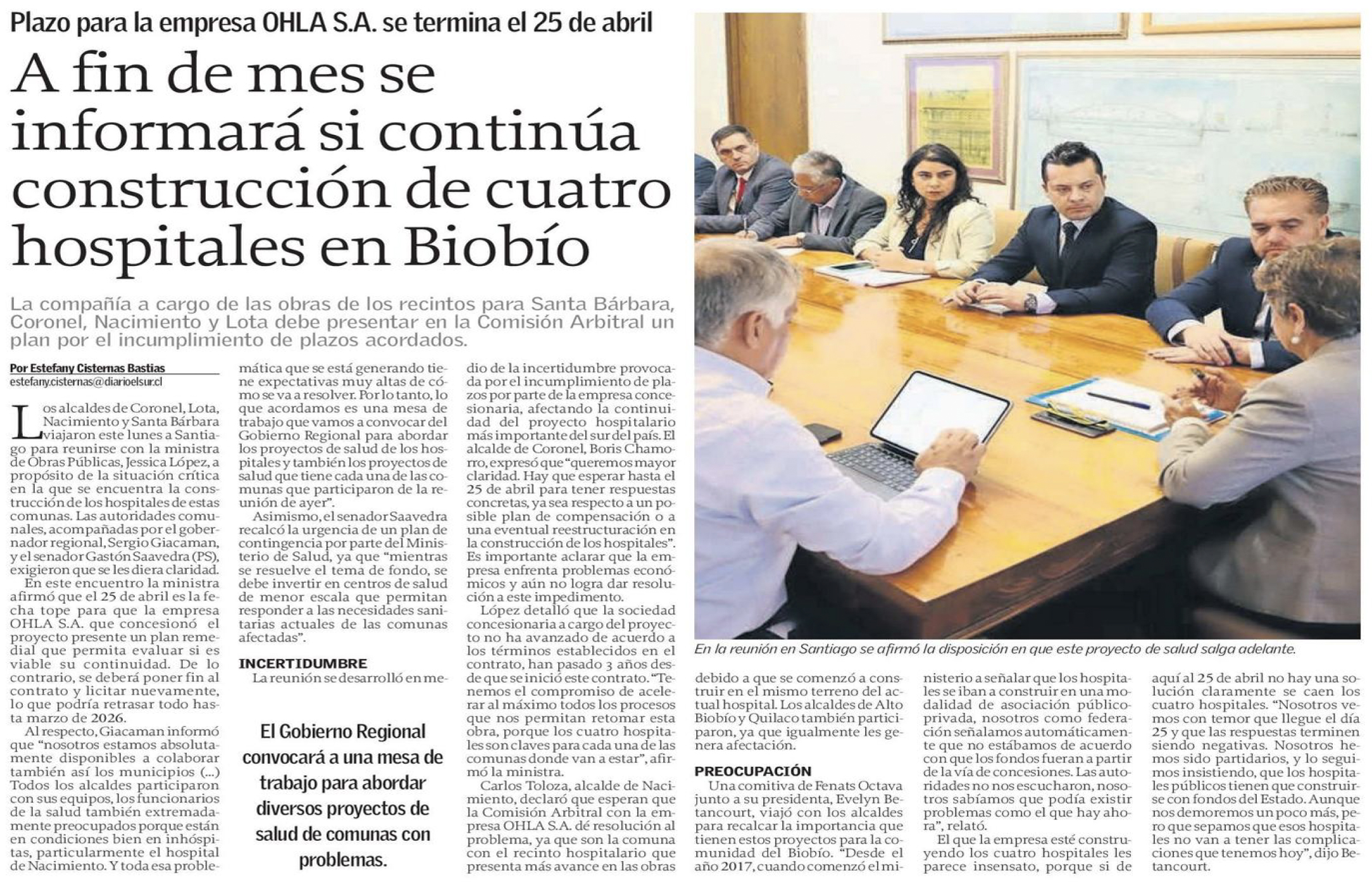 EL SUR – La compañía a cargo de las obras de los recintos para Santa Bárbara, Coronel, Nacimiento y Lota debe presentar en la Comisión Arbitral un plan por el incumplimiento de plazos acordados.