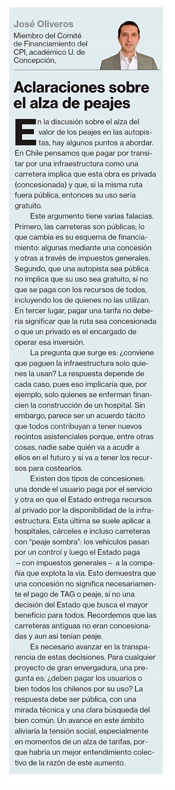LA SEGUNDA – Para cualquier proyecto de gran envergadura, una pregunta es: ¿deben pagar los usuarios o bien todos los chilenos? La respuesta debe ser pública.