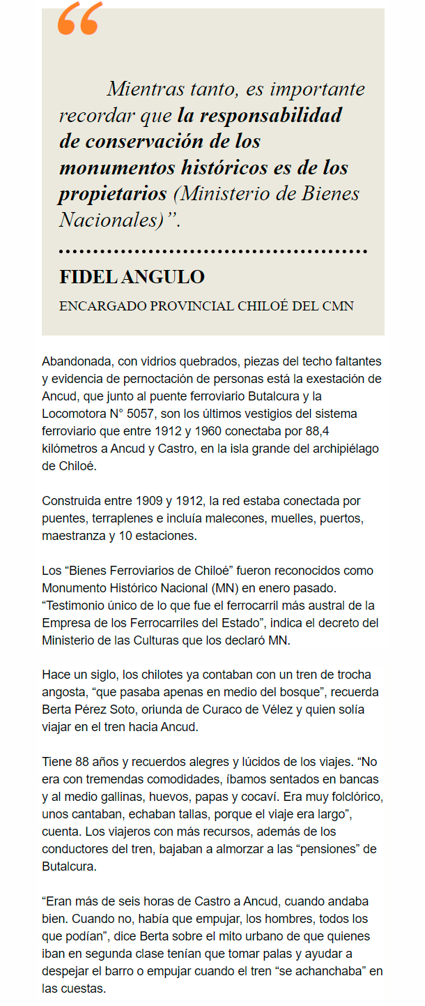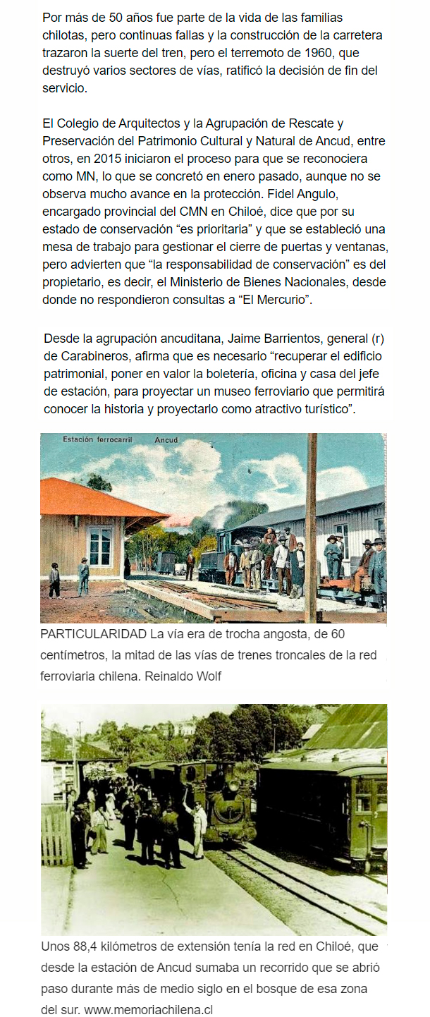 EL MERCURIO – Habitantes de la zona recuerdan la importancia que tuvo la red, que sumaba 10 estaciones cuando no había carretera hasta Castro.