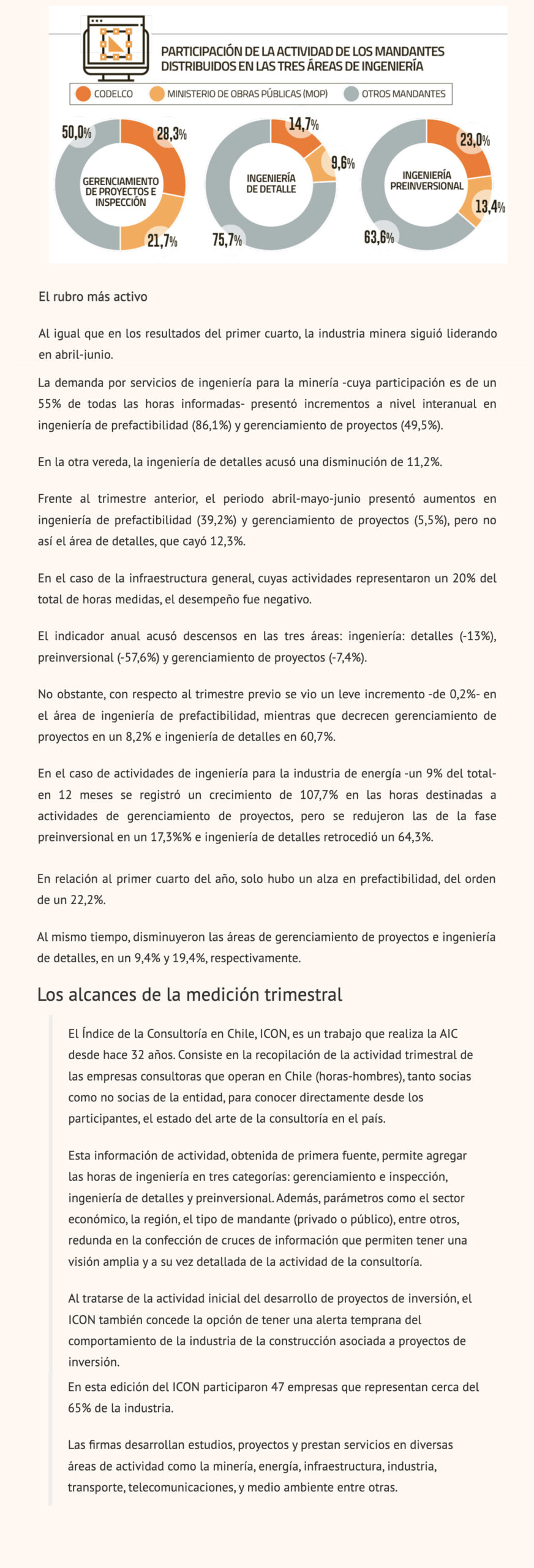 DIARIO FINANCIERO – El indicador que elabora la AIC creció un 16,4% en términos anuales en abril-junio.