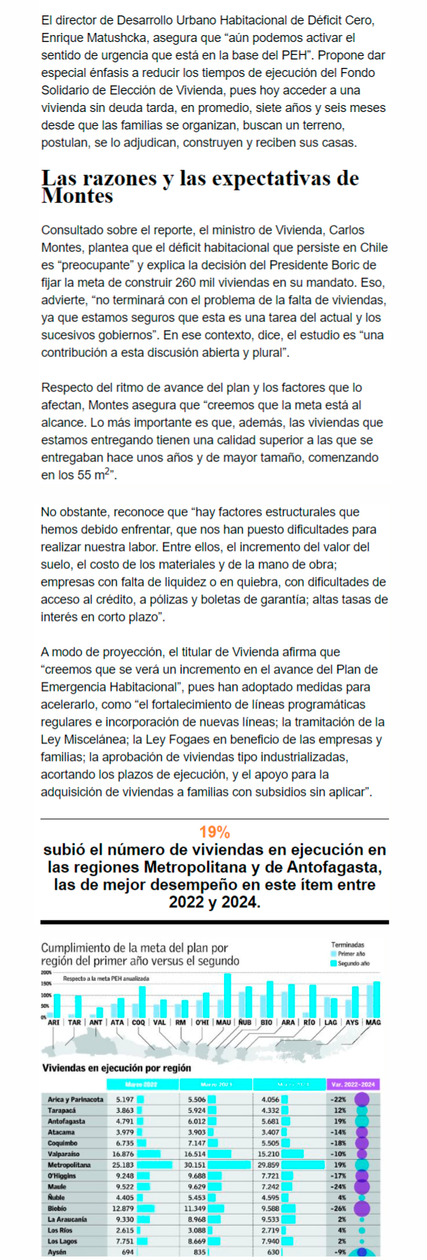 EL MERCURIO – Ante el avance del 42% en el programa de emergencia, el ministro Carlos Montes reconoce factores “estructurales” que lo dificultan