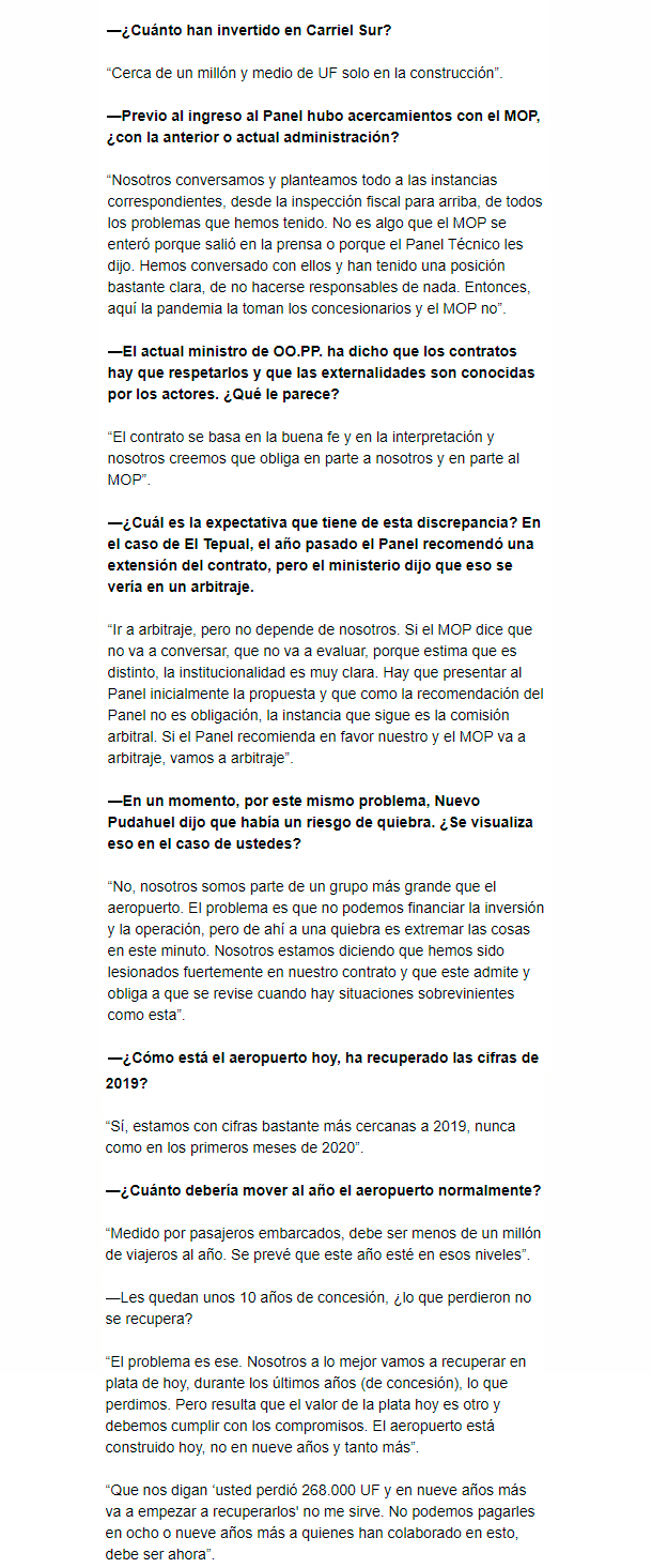 EL MERCURIO – Sergio Icaza, presidente de la concesionaria y socio de la constructora, Icafal, profundiza en pugna con el ministerio.