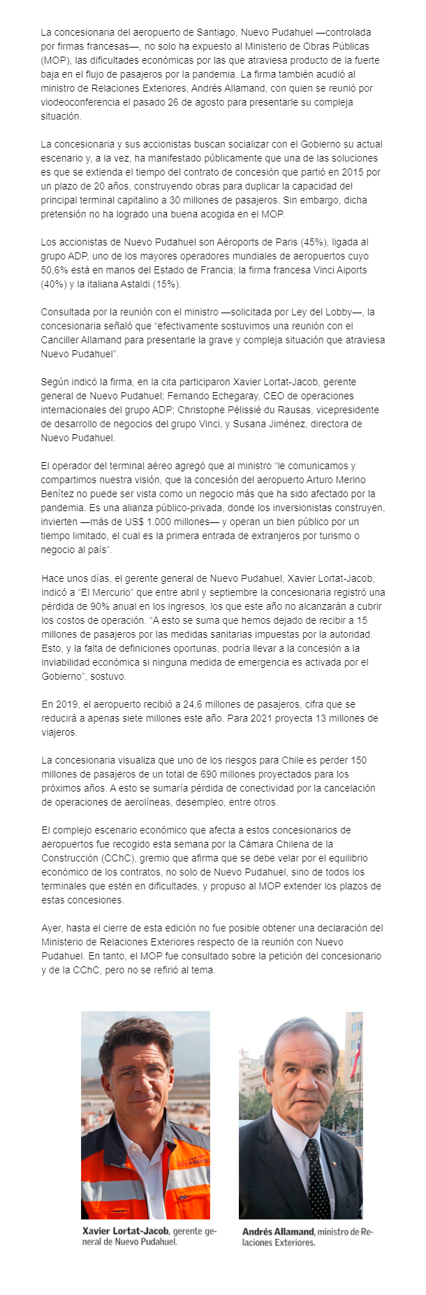 EL MERCURIO – Debido a la pandemia, Nuevo Pudahuel registró una pérdida de 90% anual en sus ingresos entre abril y septiembre. La compañía pretende que el plazo de su contrato sea extendido.