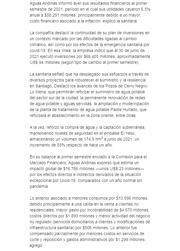 Fuente: El Mercurio, Viernes 27 de Agosto de 2021
