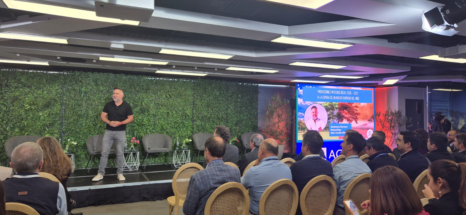 El análisis climático fue realizado por Gianfranco Marcone, meteorólogo de amplia trayectoria, quien afirmó que los diversos modelos indican que se espera posiblemente un fenómeno del Niño más intenso durante el segundo semestre de 2026. Este escenario -dijo- va asociado a aumento de precipitaciones y de temperaturas, ante lo que el país debe estar preparado.
