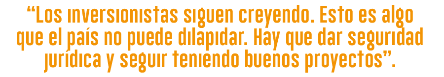 – Están dadas todas las condiciones para que se pueda mantener un nivel de concesiones muy importante, y está previsto ya para 2022 una inversión pública a través del presupuesto. Eso es lo que el país necesita más allá de las opiniones políticas. Las obras no tienen color político, lo que tienen es la necesidad de la gente que debe ser satisfecha de la mejor forma.