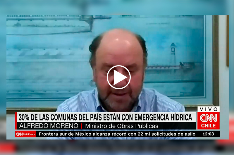 El ministro de Obras Públicas, Alfredo Moreno, conversó con CNN Chile sobre la compleja situación que se vive a lo largo de Chile respecto de la escasez de agua que mantiene a cinco regiones del país, equivalentes a 104 comunas, bajo la categoría de “emergencia hídrica”.