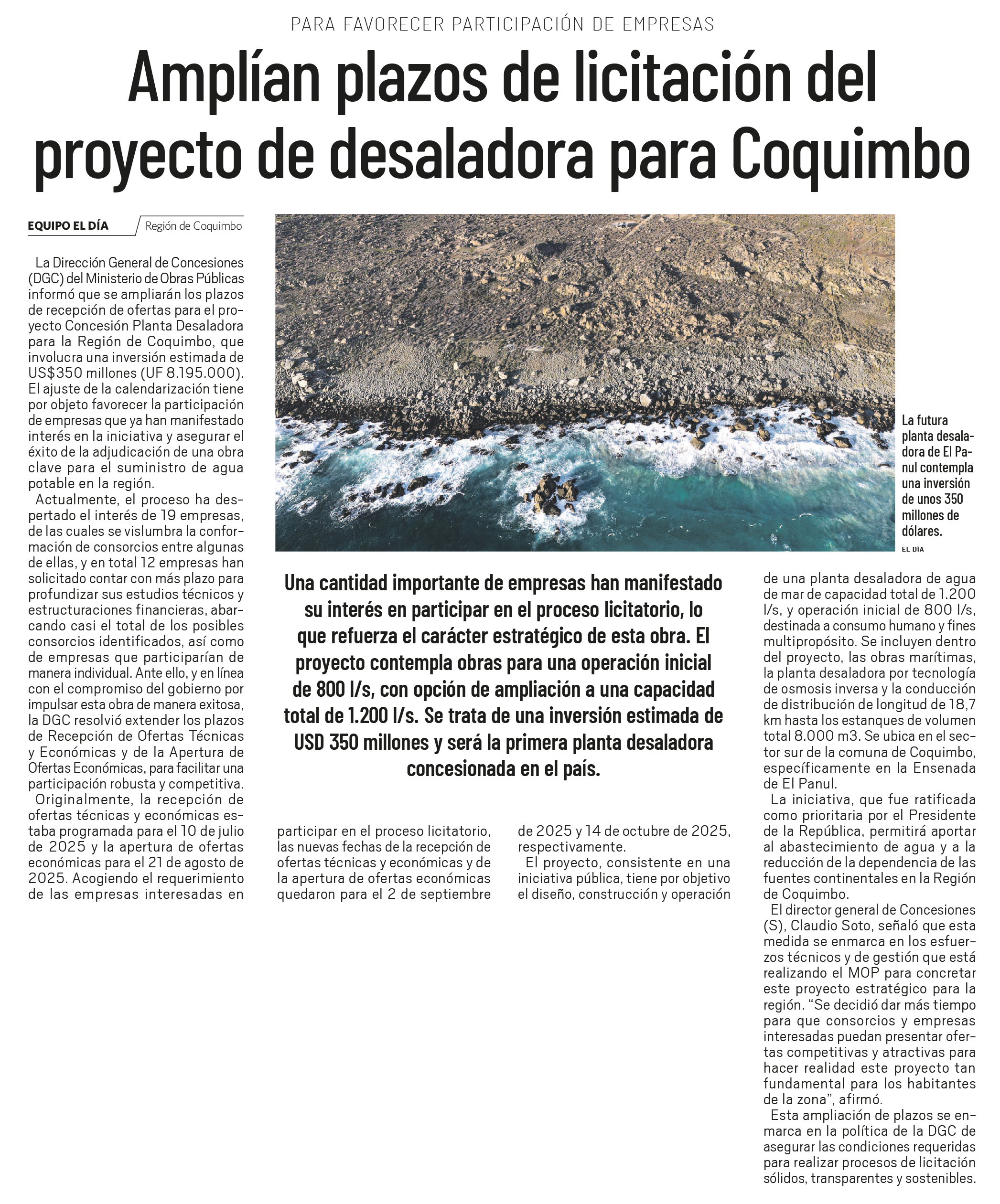 EL DÍA – Una cantidad importante de empresas han manifestado su interés en participar en el proceso licitatorio, lo que refuerza el carácter estratégico de esta obra.