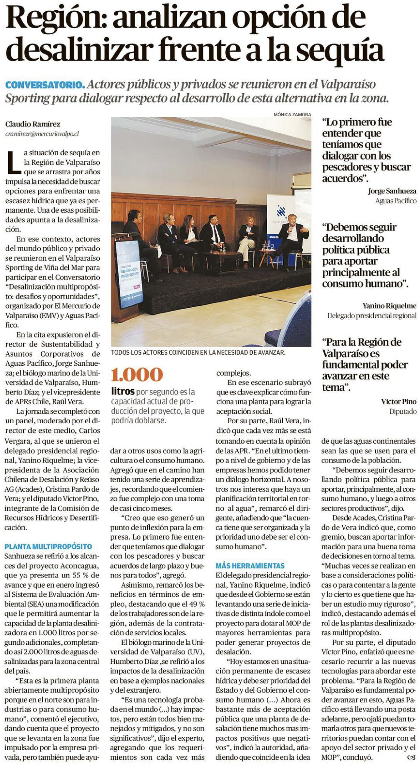 EL MERCURIO DE VALPARAÍSO – Actores públicos y privados se reunieron para dialogar respecto al desarrollo de esta alternativa en la zona