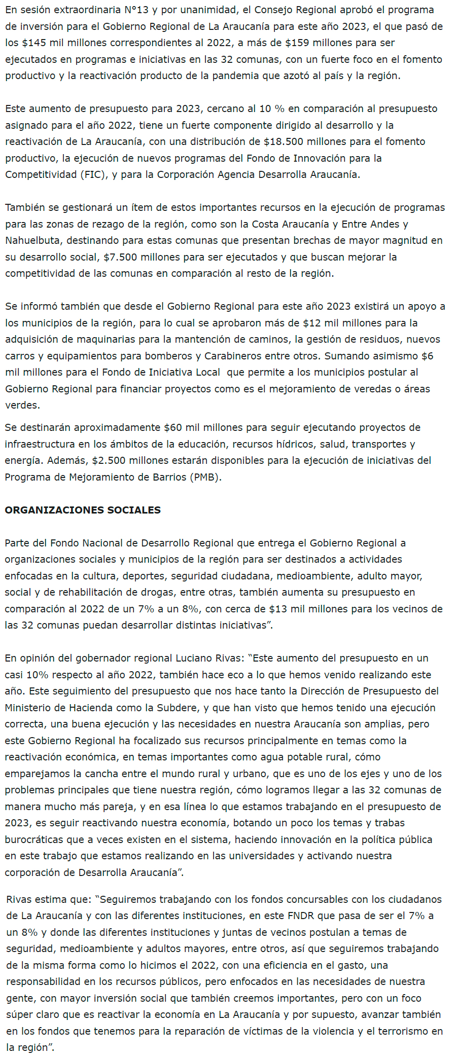 CLAVE9 – Este aumento de presupuesto para 2023, cercano al 10% en comparación al presupuesto asignación el año 2022, tiene un fuerte componente dirigido al desarrollo y la reactivación de la Araucanía.