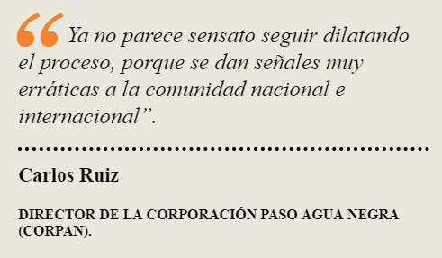 En tanto, el director de la Corporación Paso Agua Negra (Corpan), Carlos Ruiz, afirmó que “dados los acontecimientos, desde los dos años de retraso efectivo desde el proceso de precalificación, en mayo de 2017, los seis meses que pidió el MOP para revisar el proyecto, y la última mención de las fallas geológicas, resulta muy entendible que el gobernador de San Juan plantee sus dudas respecto a que se estaría dilatando el proceso”, aseguró Ruiz. Consultado el MOP, no hubo una versión respecto de este tema hasta el cierre de esta edición.