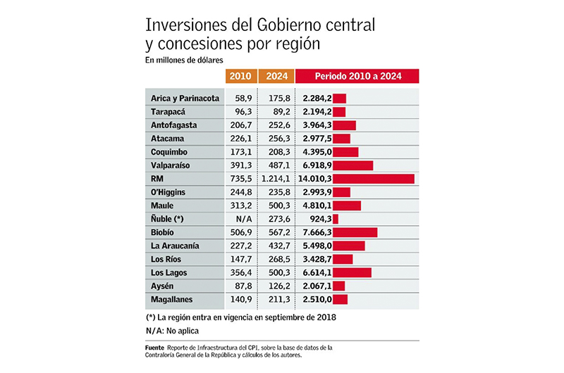 EL MERCURIO – La RM se impone como destino de las inversiones públicas del país. Así se desprende del reporte de Inversión Regionalizada en Infraestructura Pública 2010 – 2024 del. Gobierno Central y Concesiones, realizado por el Consejo de Políticas de Infraestructura (CPI).