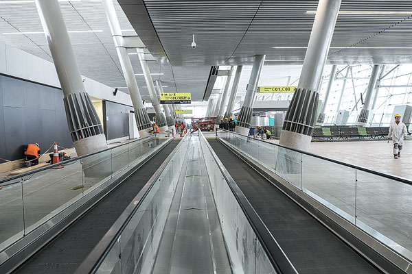 Dadas las grandes dimensiones, se incorporan decenas de bandas transportadoras para facilitar los desplazamientos de las personas que transitarán por el nuevo terminal.