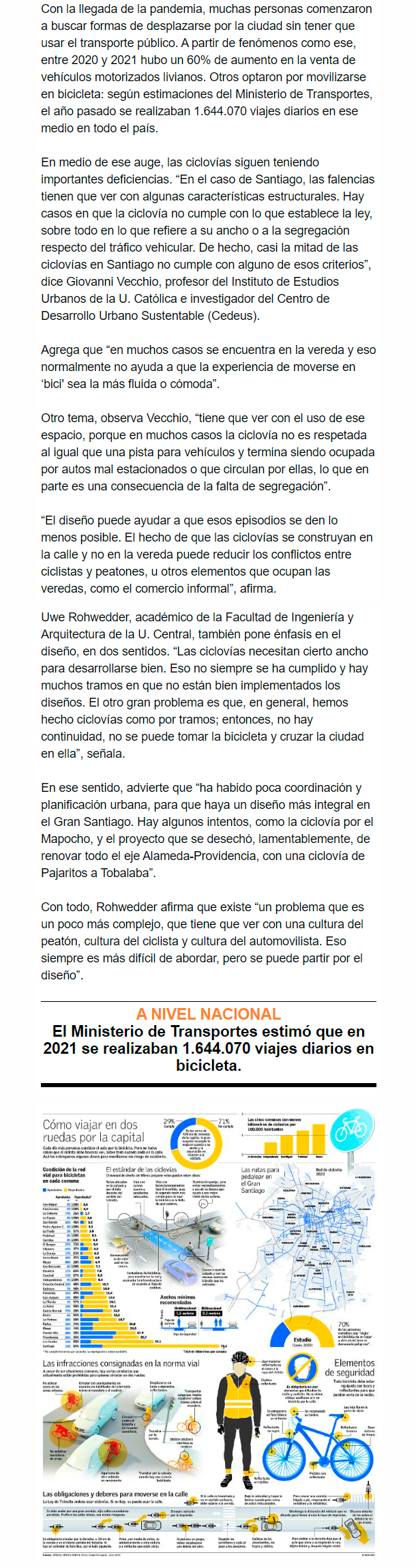 EL MERCURIO – Expertos advierten sobre la poca planificación urbana, aunque también critican la falta de cultura de los ciclistas, peatones y automovilistas en la convivencia vial.