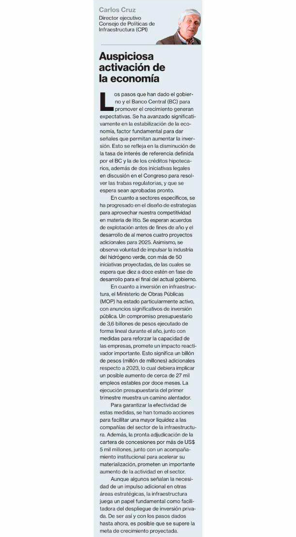 LA SEGUNDA – La infraestructura juega un papel fundamental como facilitadora del despliegue de inversión privada. De ser así es posible que se supere la meta de crecimiento proyectada