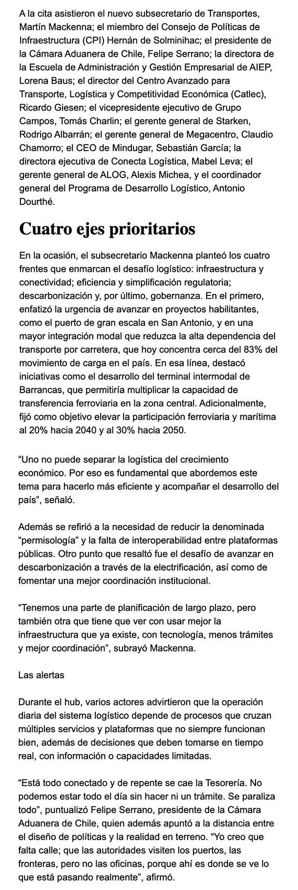 EL MERCURIO – Durante el encuentro, que juntó a gremios operadores y desarrolladores además de la academia, el subsecretario de transportes Martín Mackenna delineó cuatro ejes prioritarios de su gestión para fomentar el desarrollo de la industria