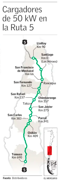 Autos eléctricos ya tienen puntos de carga que les permiten recorrer la Ruta 5 entre Llaillay y Temuco