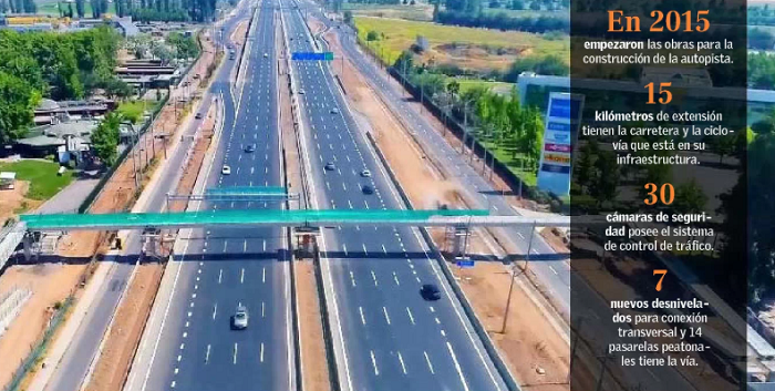 La carretera -que tubo un costo de US$ 220 millones- será la primera autopista concesionada que se entregue en una década en Santiago, desde la habilitación del túnel San Cristóbal, en 2008.