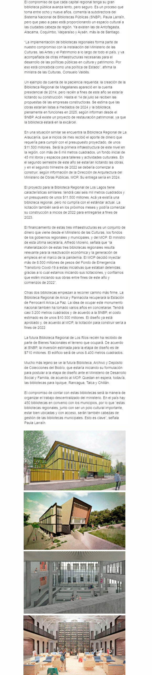 EL MERCURIO – Las de Magallanes, La Araucanía y Los Lagos están en proceso de licitación, mientras que las de Los Ríos y de Arica y Parinacota ya están encaminadas. Esta infraestructura es en un vibrante polo cultural donde se asienta.