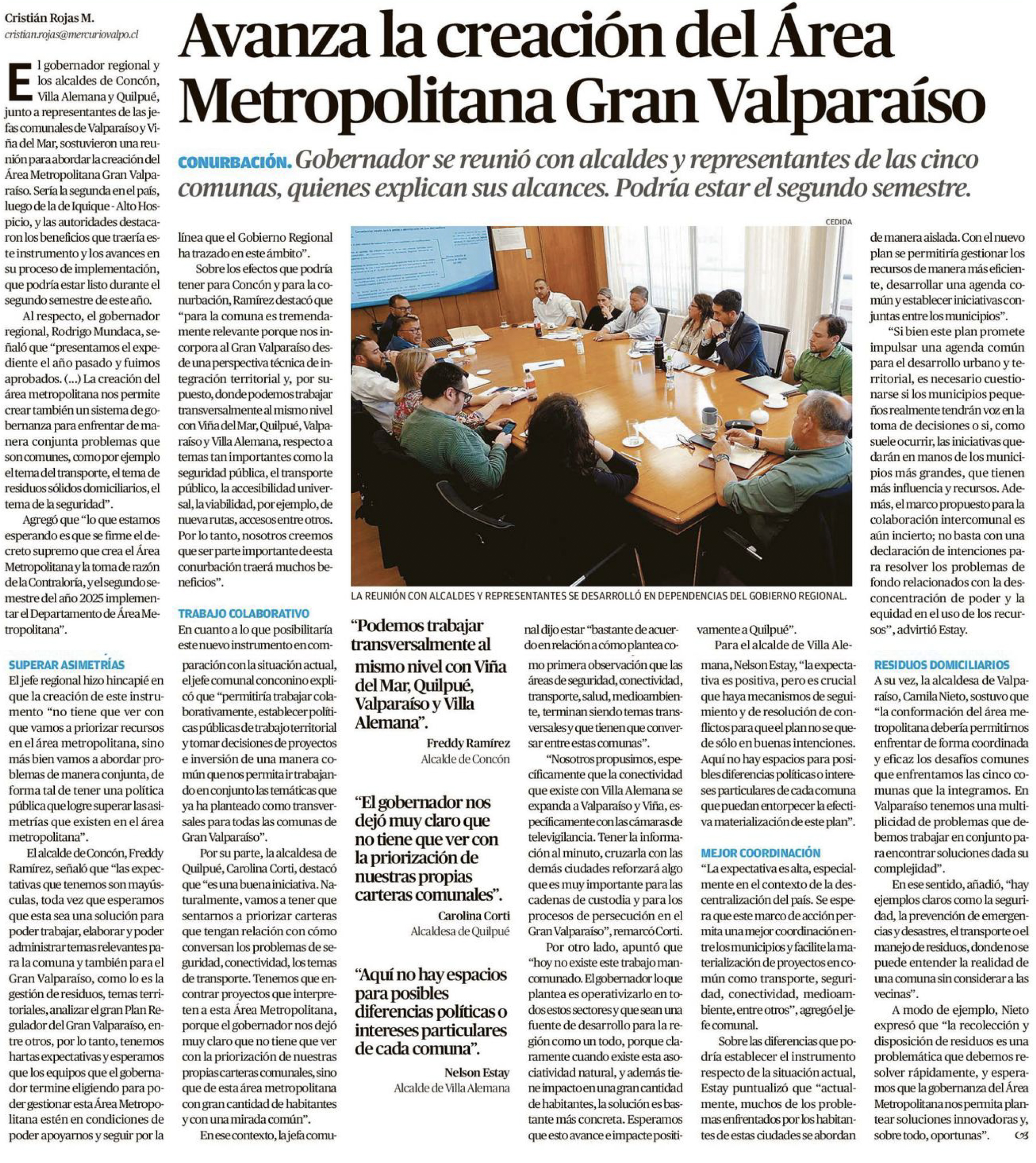 EL MERCURIO DE VALPARAÍSO – Gobernador se reunió con alcaldes y representantes de las cinco comunas, quienes explican sus alcances. Podría estar el segundo semestre.