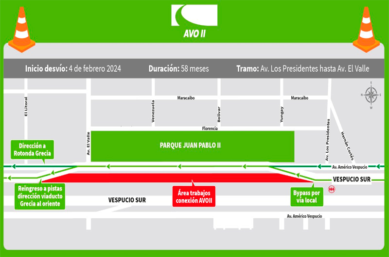 Este desvío y la condición de tránsito del sector se mantendrá mientras dure la construcción de AVO II.