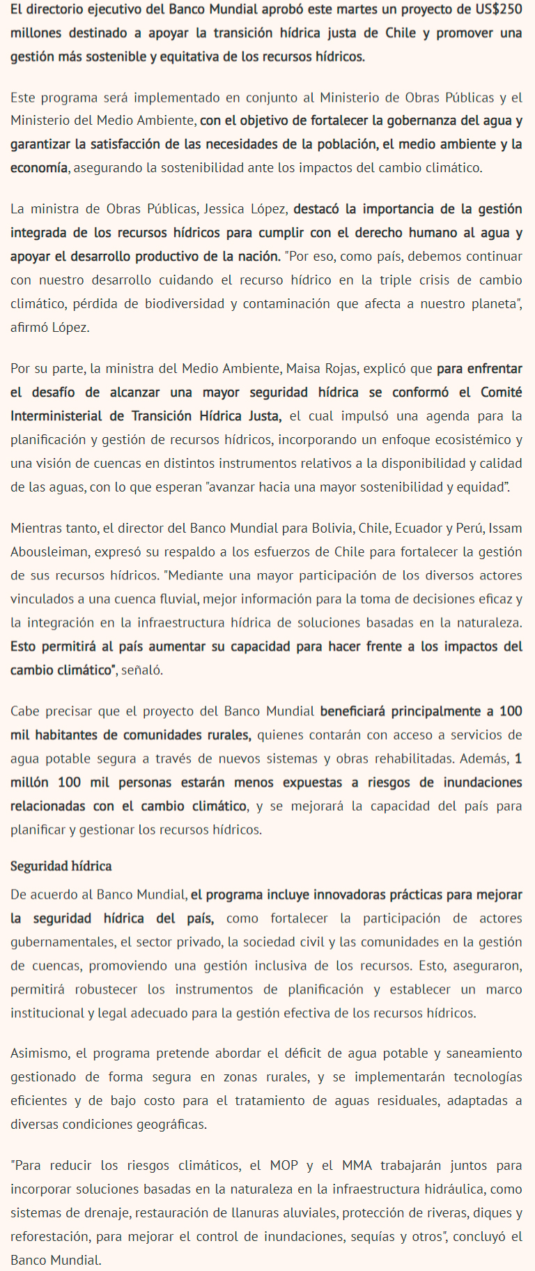 DIARIO FINANCIERO – El programa será implementado en conjunto al MOP y al MMA, con el objetivo de fortalecer la gobernanza del agua y garantizar la satisfacción de las necesidades de la población, el medio ambiente y la economía