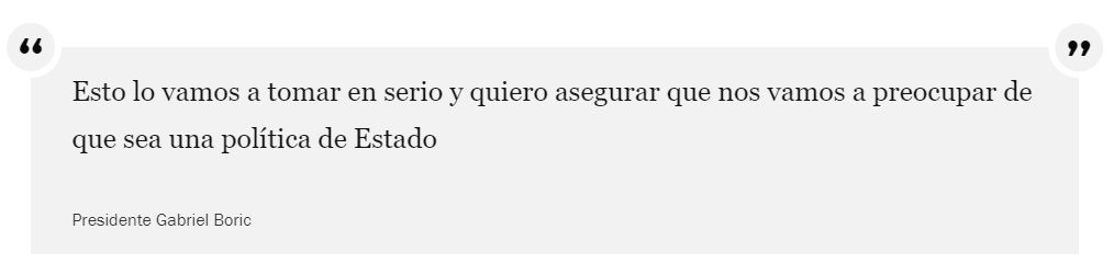 “Esto lo vamos a tomar en serio y quiero asegurar que nos vamos a preocupar de que sea una política de Estado y por eso es importante también que participen representantes del gobierno anterior”, destacó el Mandatario.