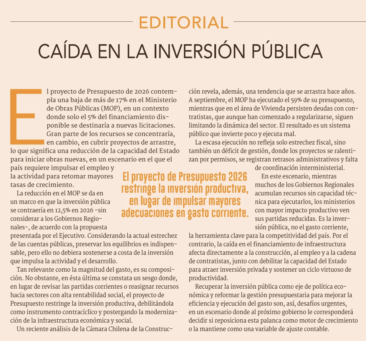 DIARIO FINANCIERO – El proyecto de Presupuesto 2026 restringe la inversión productiva, en lugar de impulsar mayores adecuaciones en gasto corriente.