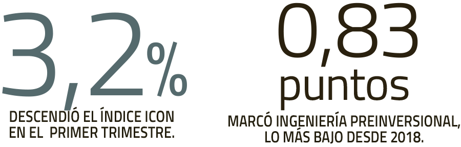 El deterioro trimestral en el ámbito de la ingeniería preinversional -que al situarse en 0,83 puntos fue el más bajo registrado desde 2018- estuvo marcado por la menor demanda observada en cuatro de los seis sectores económicos contemplados en la medición del indicador, destacando el mal comportamiento de la industria (-38,9%) y la minería (-34,8%).