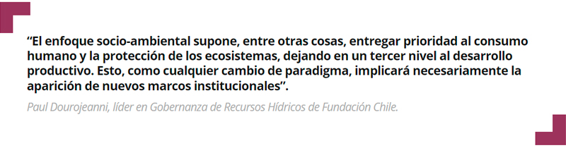 Asimismo, subraya que esto impone otro desafío al Comité, pues “el enfoque socio- ambiental supone, entre otras cosas, entregar prioridad al consumo humano y la protección de los ecosistemas, dejando en un tercer nivel al desarrollo productivo. Esto, como cualquier cambio de paradigma, implicará necesariamente la aparición de nuevos marcos institucionales”.