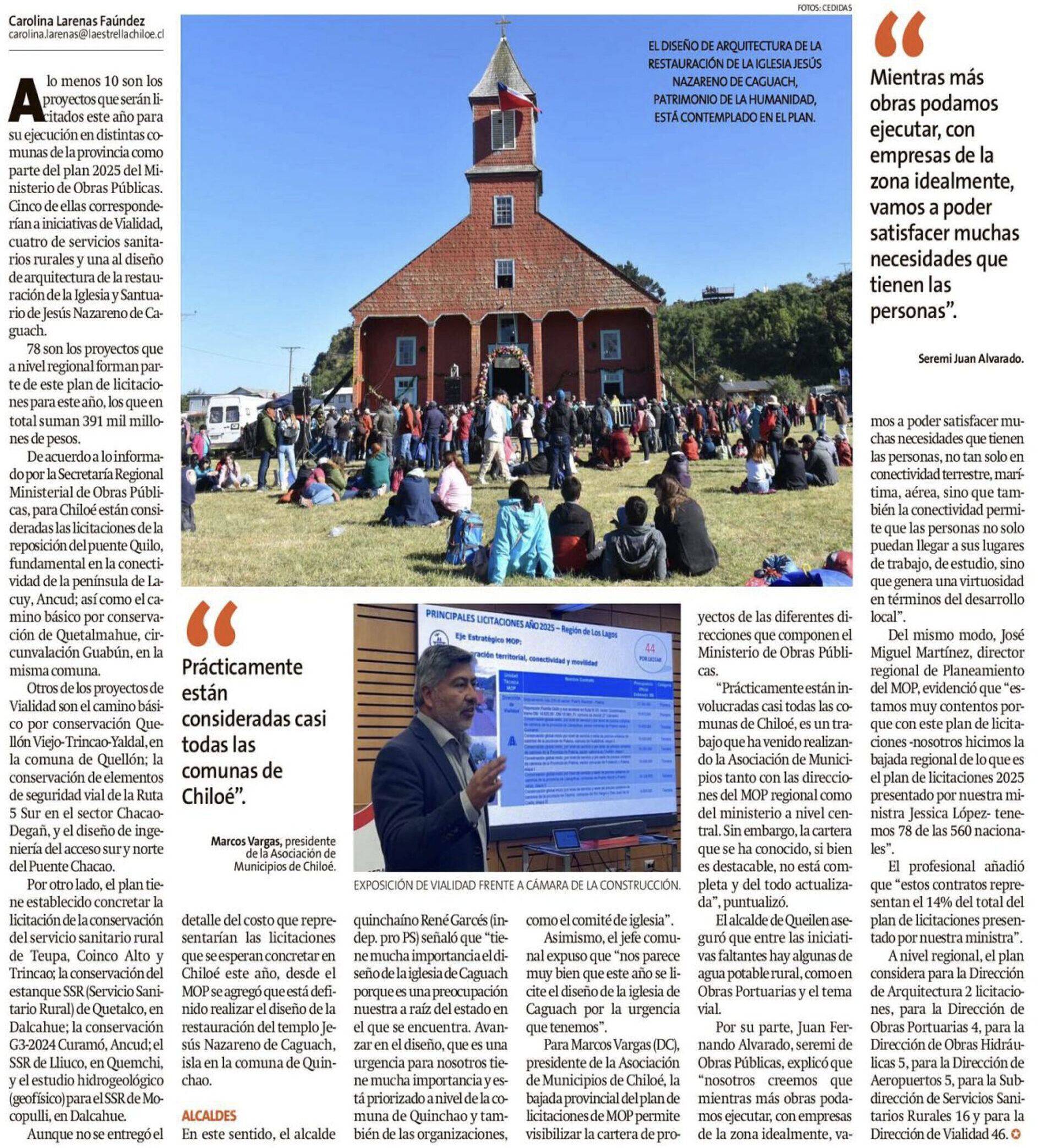LA ESTRELLA DE CHILOÉ – Secretaría Regional Ministerial de Obras Públicas detalló la decena de iniciativas a licitar durante este año. Autoridades chilotas valoraron el anuncio.