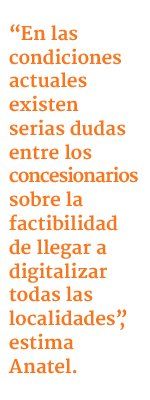 “En las condiciones actuales existen serias dudas entre los concesionarios sobre la factibilidad de llegar a digitalizar efectivamente todas las localidades que hoy reciben el servicio analógico. Una estimación es que una de cada cuatro de las estaciones existentes podría no llegar a digitalizarse”, dice el documento.