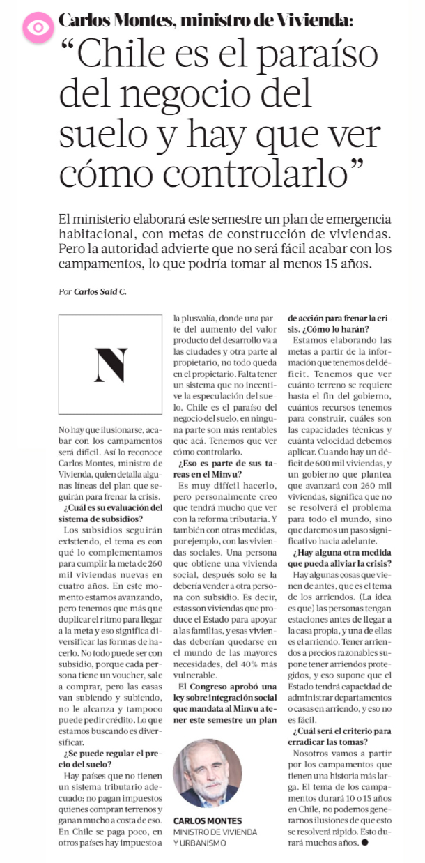 LA TERCERA – El ministerio elaborará este semestre un plan de emergencia habitacional, con metas de construcción de viviendas. Pero la autoridad advierte que no será fácil acabar con los campamentos, lo que podría tomar al menos 15 años.
