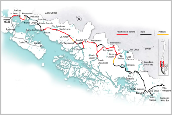 Carretera Austral suma 536,8 km asfaltados, pero más del 50% del trazado sigue con ripio