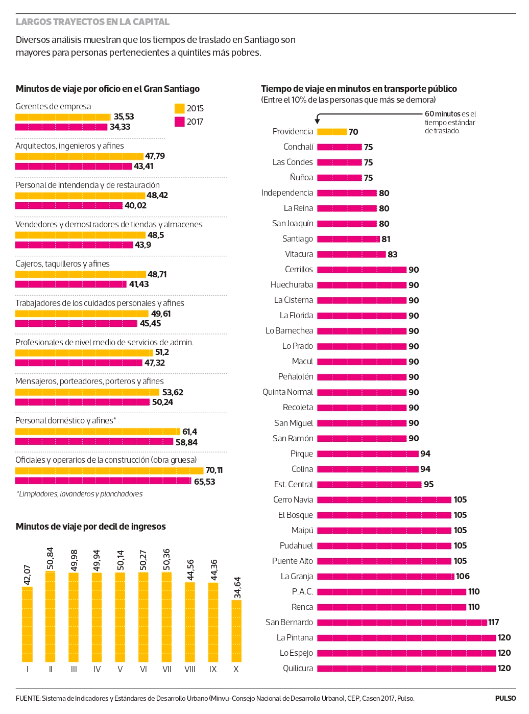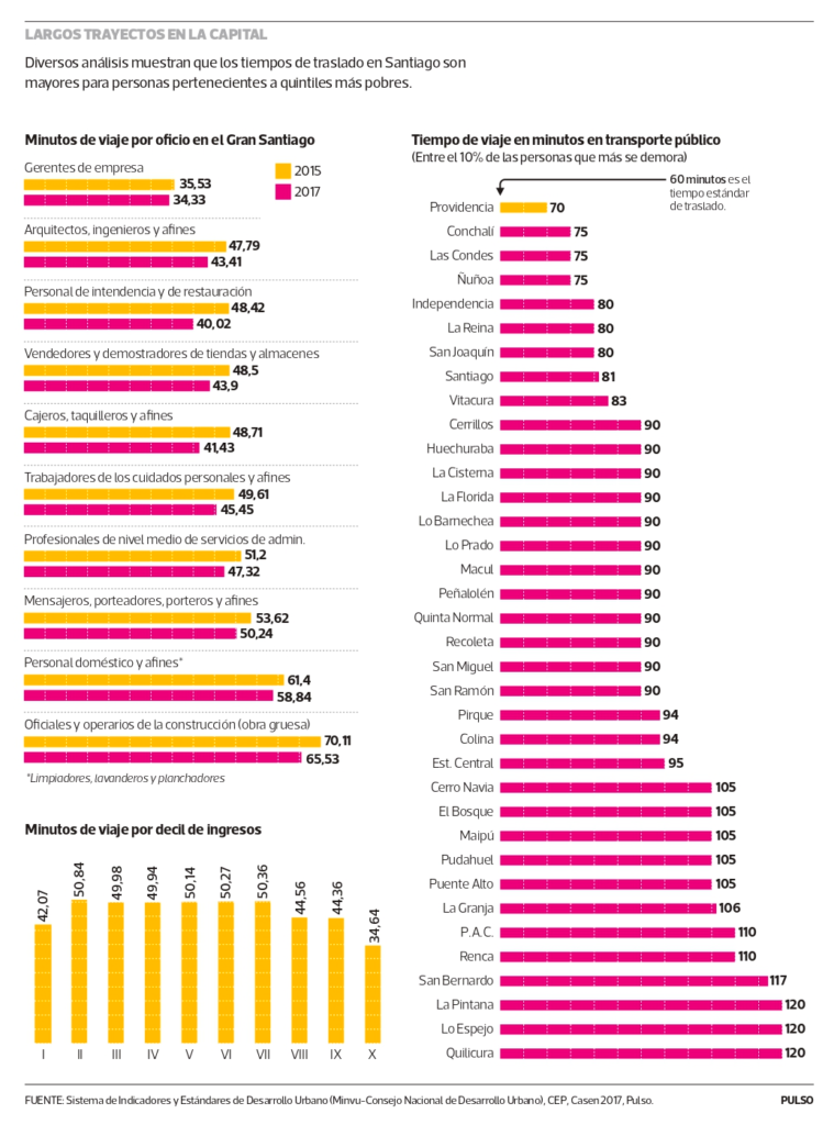 Casen 2017 muestra fuerte diferencia en tiempos de traslado de santiaguinos según tipo de trabajo