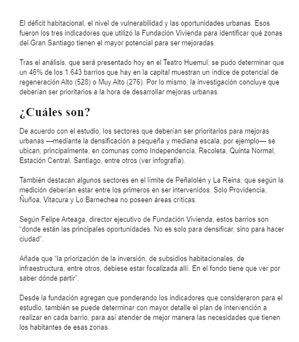 EL MERCURIO – Análisis midió déficit habitacional, niveles de vulnerabilidad y oportunidades de cada sector.