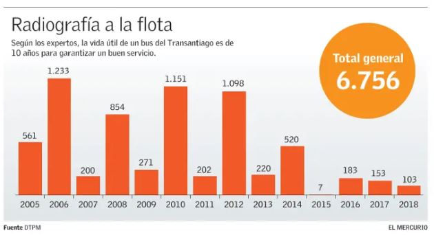 Sebastián Raveau, investigador del Centro de Desarrollo Urbano Sustentable (Cedeus) de la U. Católica, afirma que a las micros del Transantiago se les “establece una vida útil de 10 años, tras lo cual la flota debe renovarse”. El límite se instaura -plantea- “en muchos casos para garantizar un nivel de servicio”.