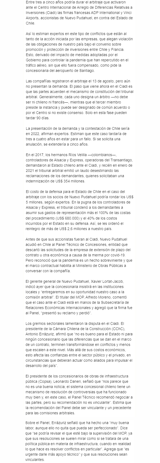 Fuente: El Mercurio, Miércoles 18 de Agosto de 2021