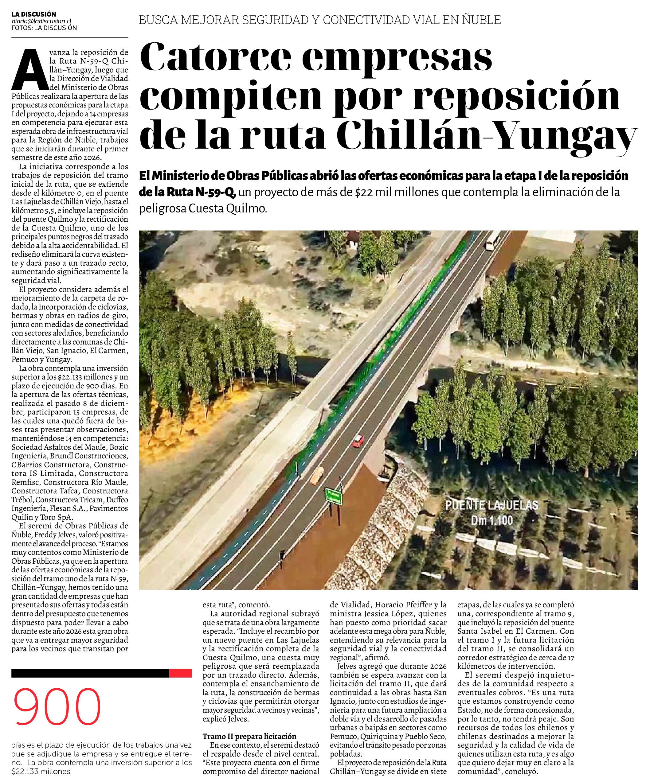 LA DISCUSIÓN – El Ministerio de Obras Públicas abrió las ofertas económicas para la etapa I de la reposición de la Ruta N-59-Q, un proyecto de más de $22 mil millones que contempla la eliminación de la peligrosa Cuesta Quilmo.