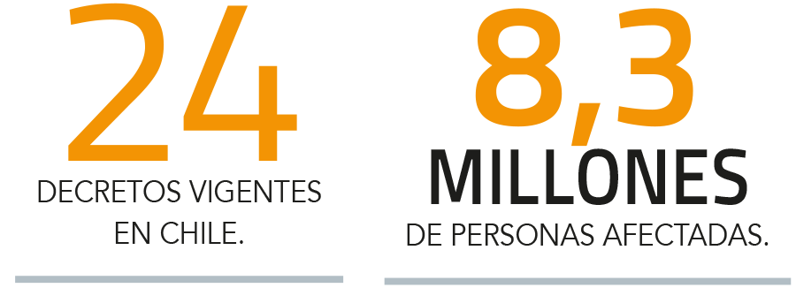 En lo que va del 2022, se han firmado 14 decretos de escasez hídrica y desde que comenzó a aplicarse esta medida en el año 2008 totalizan 205. Con esto, y junto a otras zonas declaradas en Valparaíso, El Maule, la Región del Libertador General Bernardo O’Higgins, Los Ríos, Atacama, Los Lagos y Coquimbo, el total de la población bajo esta situación asciende al 47,5%.