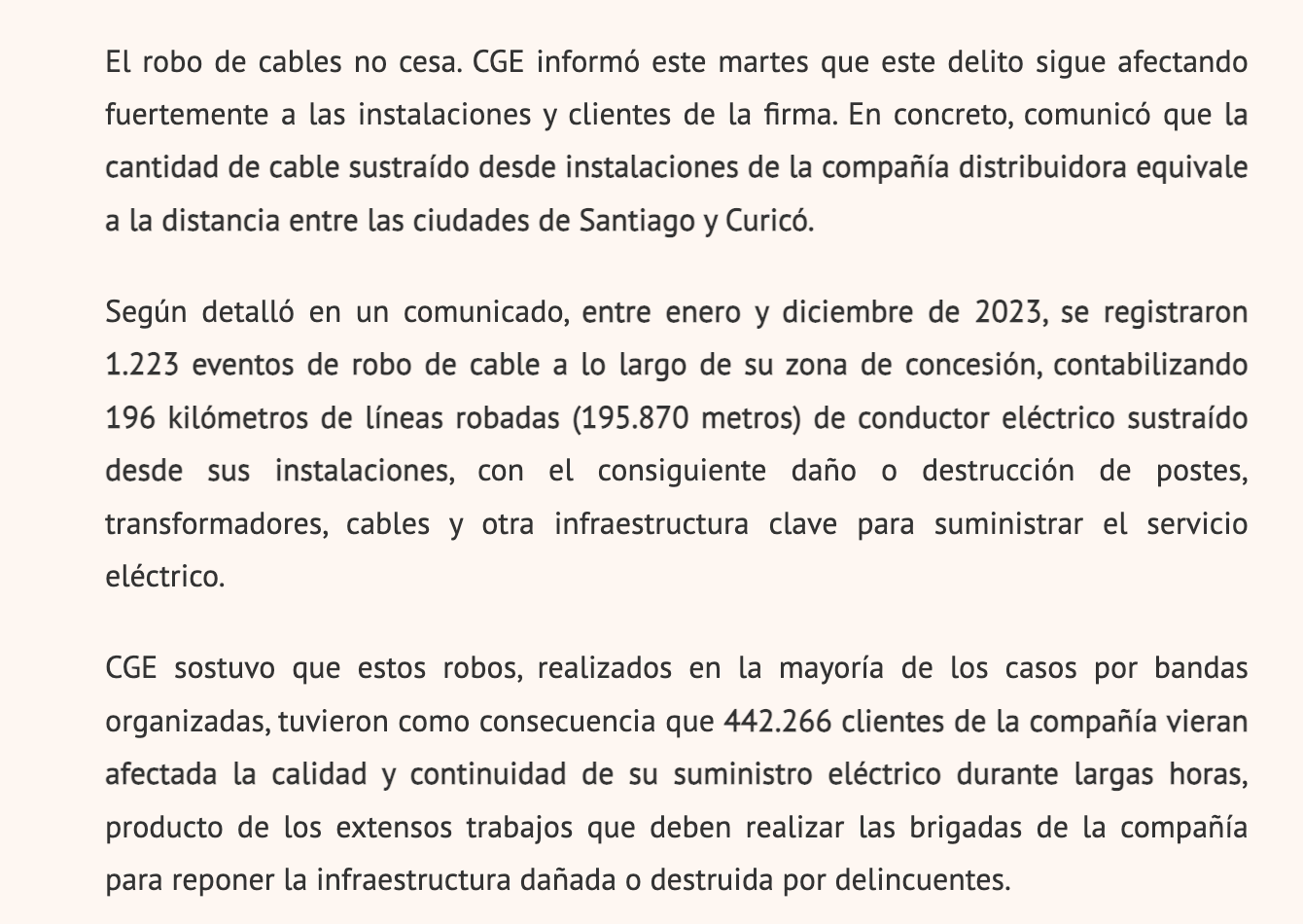DIARIO FINANCIERO – La compañía informó que, entre enero y diciembre del año pasado, se produjeron 1.223 episodios que afectaron la calidad y continuidad del servicio eléctrico a 442.266 clientes de toda la zona de concesión.
