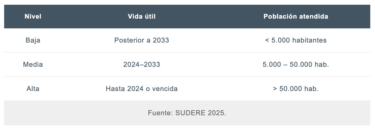 La categoría alta agrupa rellenos con vida útil vencida o próxima a expirar que atienden a más de 50 mil personas. Su cierre provocaría emergencias sanitarias, acumulación de residuos y mayores costos, considerando que reemplazarlos puede tardar hasta una década.