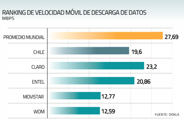 DIARIO FINANCIERO – Chile continúa en el tercio más bajo, de un total de 144 países, en su velocidad de descarga de internet móvil, según las últimas cifras arrojadas por la empresa de diagnósticos internacional Ookla.