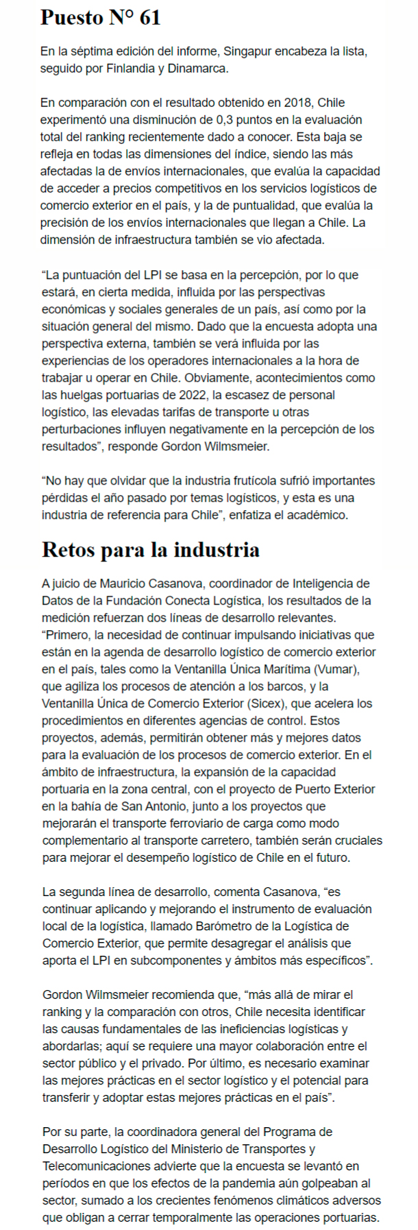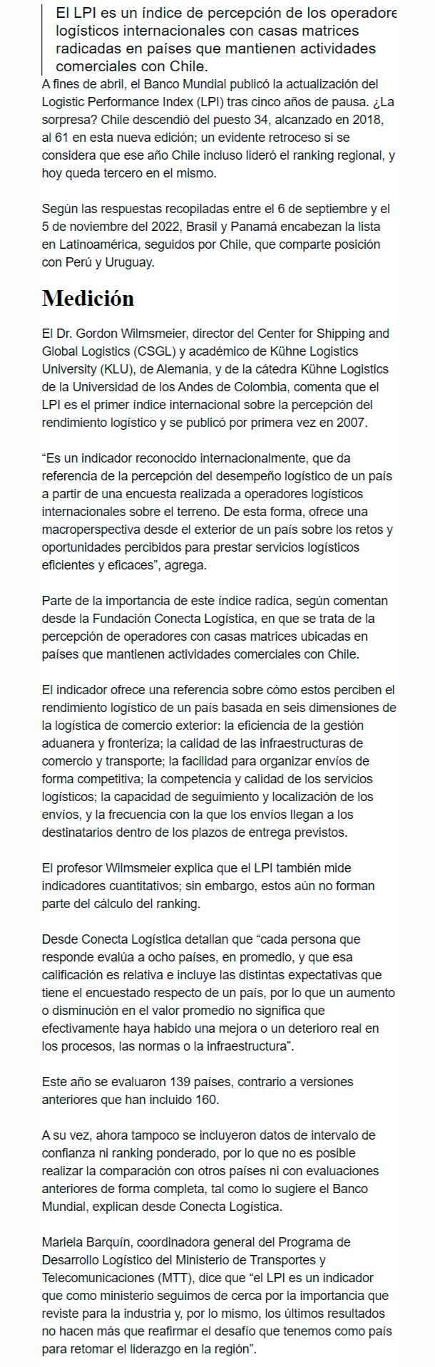 EL MERCURIO – Desde la Fundación Conecta Logística advierten que “la calificación es relativa e incluye las distintas expectativas que tiene el encuestado respecto de un país”.