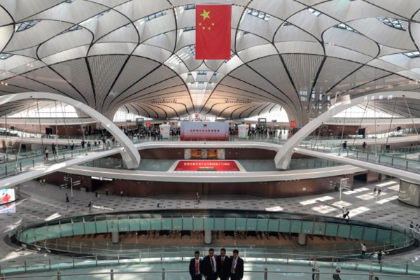 El presidente Xi Jinping en persona inauguró el aeropuerto, en forma de estrella de mar. El primer avión comercial, un Airbus A380 de la compañía China Southern Airlines con destino a Guangzhou (sur), despegó pocas horas después.