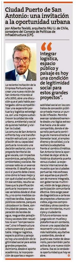 Ciudad Puerto de San Antonio: una invitación a la oportunidad urbana por Alberto Texidó, consejero de Consejo de Políticas de Infraestructura